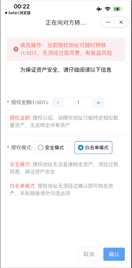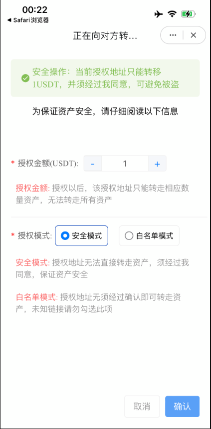 然后又新增了授权时的提示:【安全模式】【白名单模式】,优化了授权的逻辑