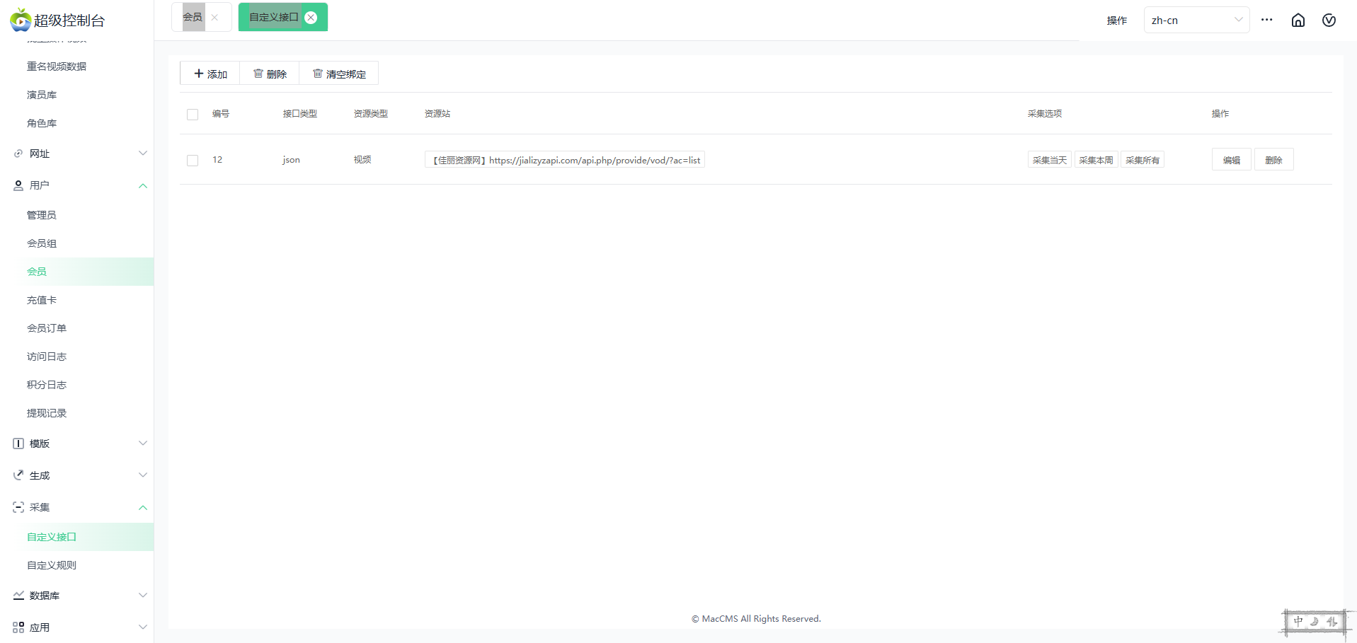 后台可设置自定义采集源、可设置会员开通观看、后端图片太大了 我清除了部分