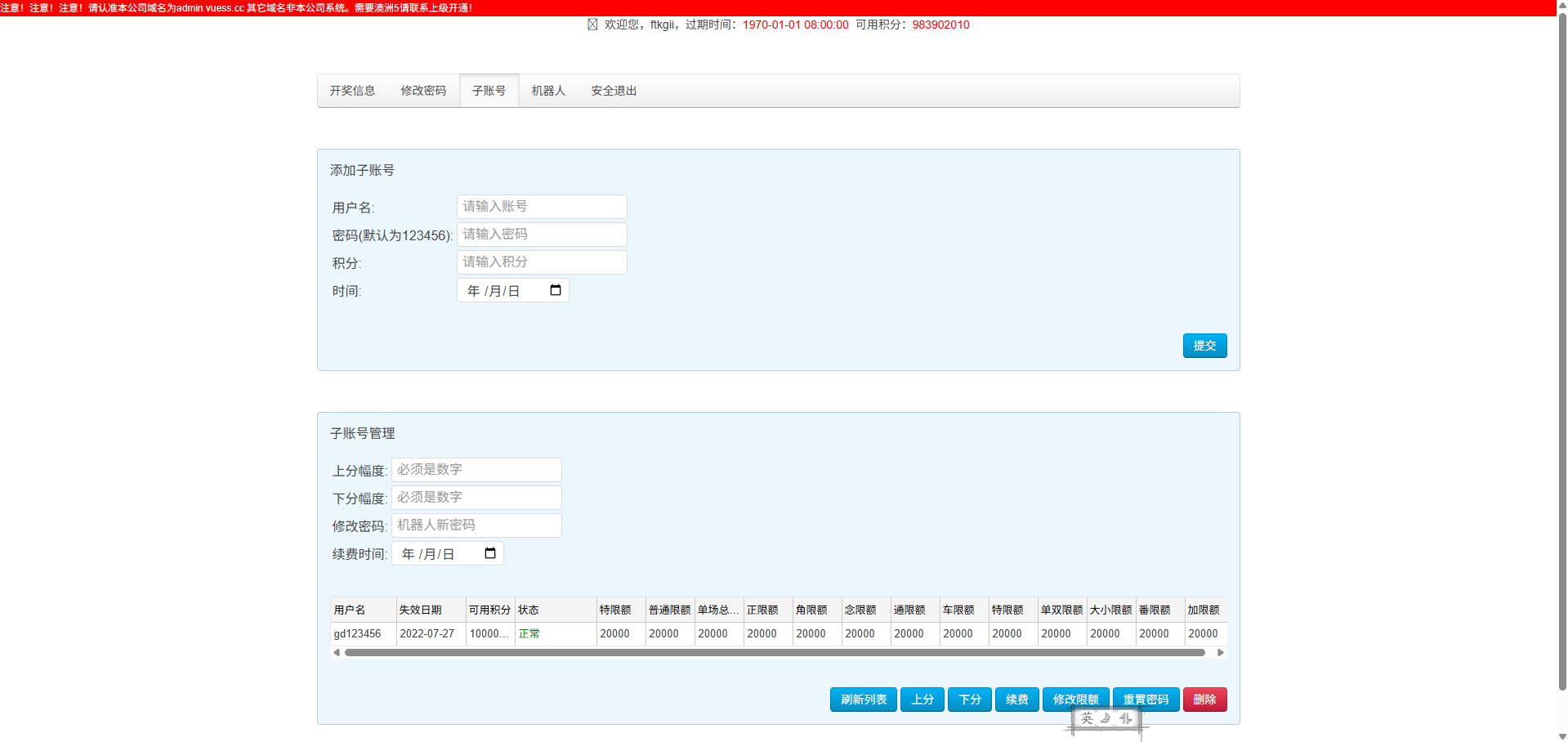 无限增加子账号及开房机器人,数据各自独立;