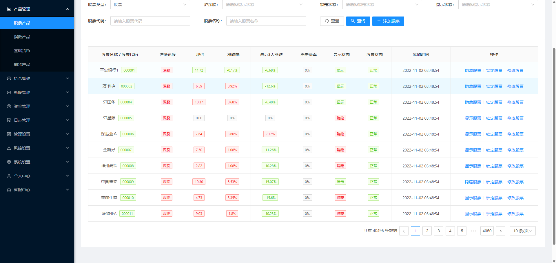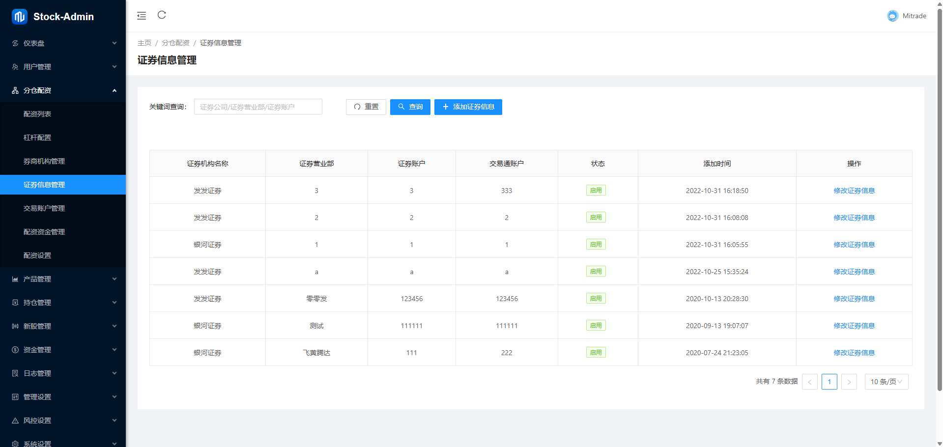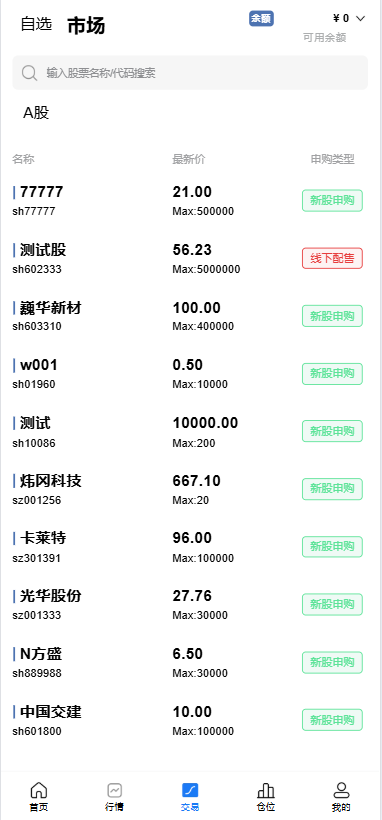 系统前端单a股交易、新股申购、大宗交易等功能