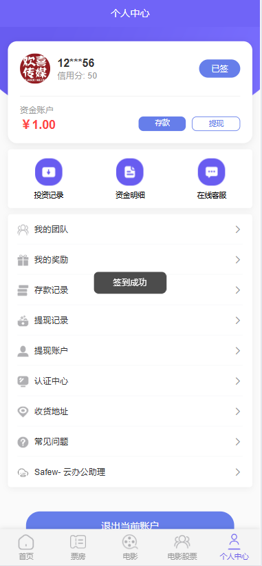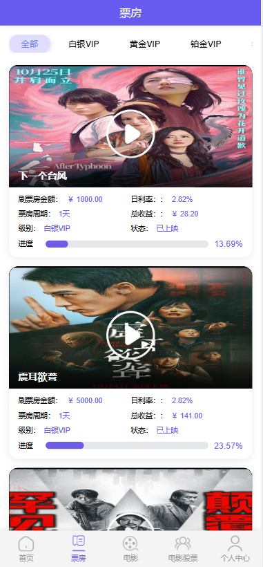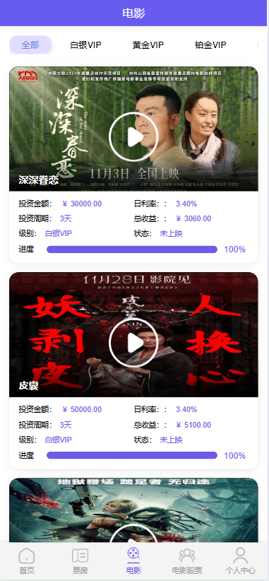 传媒电影/票房/积分商城/投资理财源码/前端VUE后端PHP