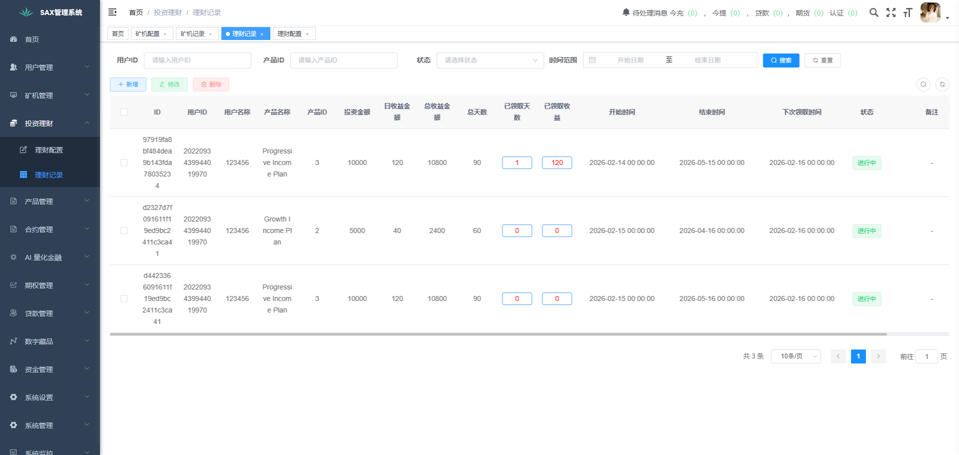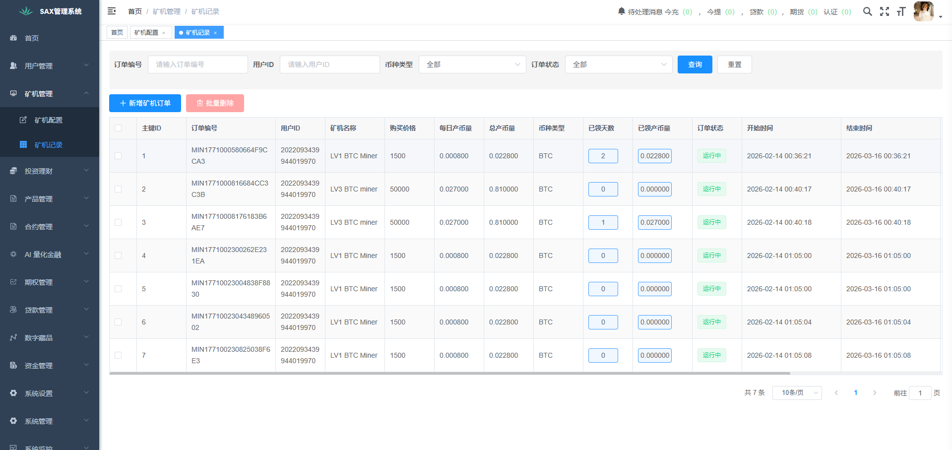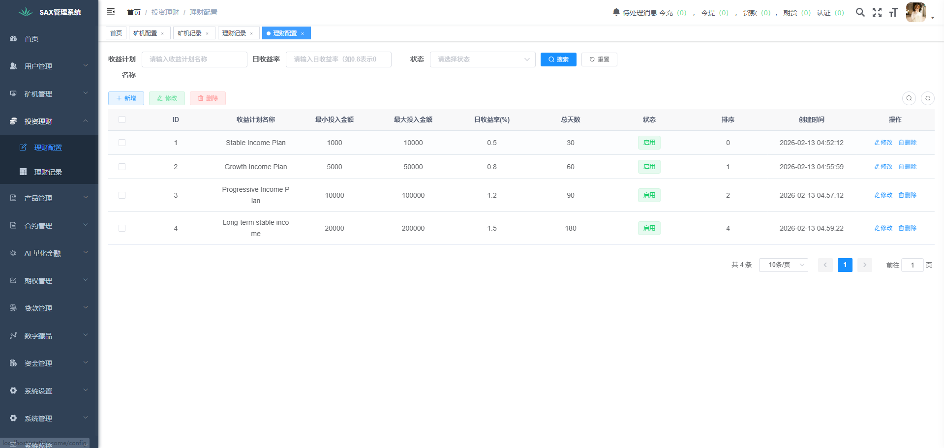 移除原有定时轮询同步数据任务、增加了投资理财和矿机、增加BTC\ETH\USDT\USDC 场内互转